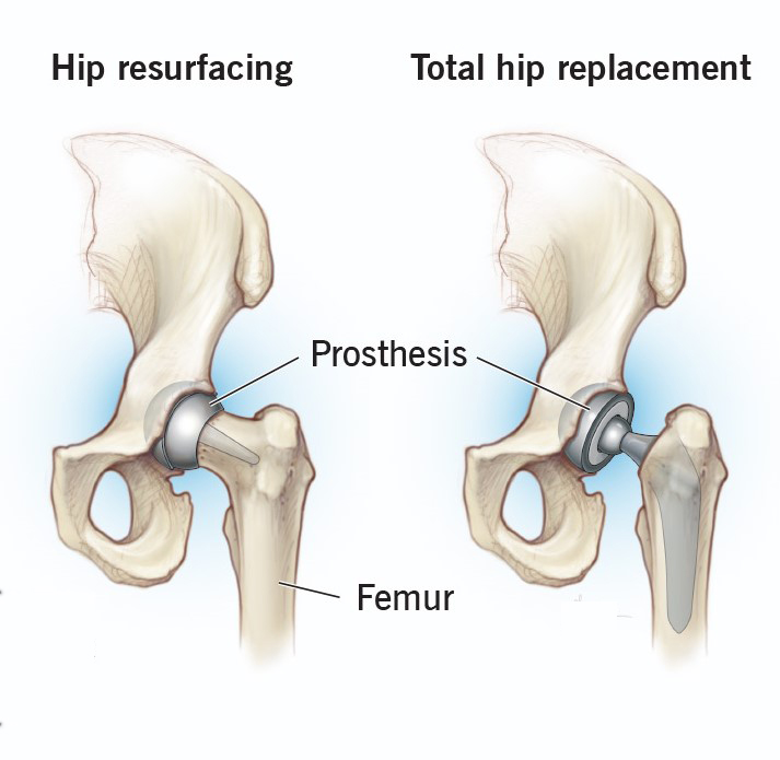 An alternative to total hip replacement, especially for younger, active patients. It involves capping the femoral head with a metal prosthesis rather than removing it entirely, preserving more natural bone structure and allowing higher impact activity post-recovery.